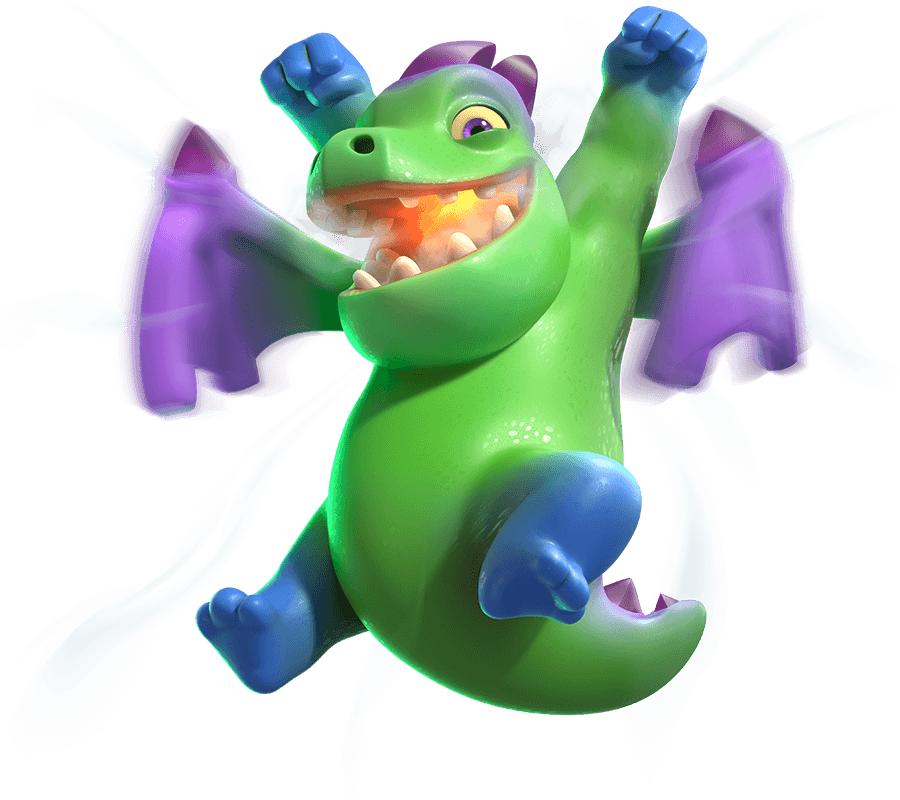 Esta carta é desbloqueada no Parquinho da PEKKA (Arena 6). O Bebê Dragão é uma tropa voadora que cospe Bolas de Fogo muito poderosas em inimigos e na Torre Coroa.