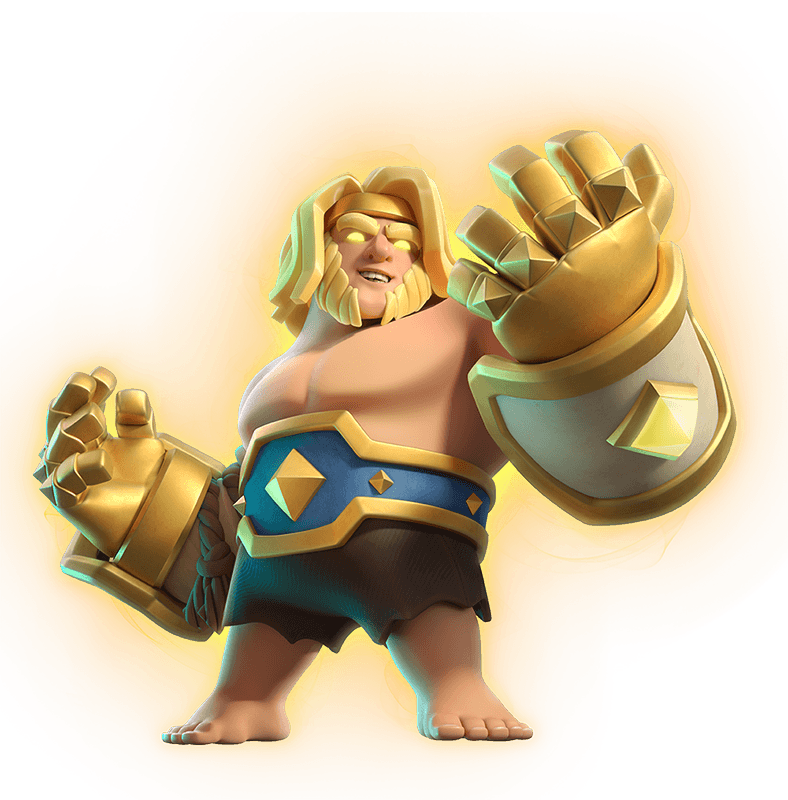 O Herói Gigante é uma versão especial da carta que você pode equipar para receber novas habilidades e efeitos em batalha. Os heróis adoram dourado, e isso se reflete na aparência deles. É muito ouro! Para liberar os heróis, você precisa de 200 Moedas de Herói, que são concedidos em alguns eventos e no caminho grátis do Pass Royale.