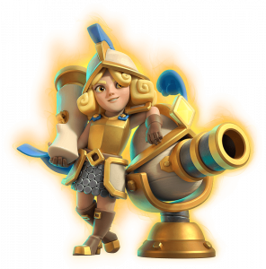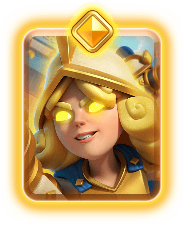 A Evolução da Mosqueteira dispara em linha reta à sua frente nos alvos pela arena. Sua munição é limitada, mas causa mais dano. Ela não atira nas torres da coroa.