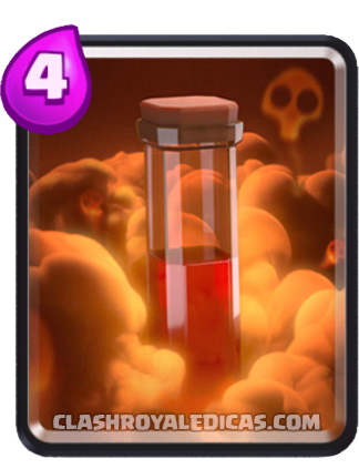 Esta carta funciona da mesma forma que no Clash of Clans. O Feitiço de Veneno causa dano as tropas em batalha pelo custo de 4 de elixir. Um diferencial é que ele também consegue causar dano nas Torres da arena.