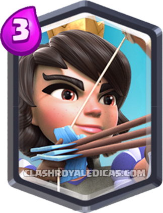 Esta princesa é parecida com a mosqueteira que temos atualmente no jogo, mas ela atira flechas que flamejantes de fogo de bem mais longe, praticamente da linha de divisão das arenas até a Torre da Coroa.