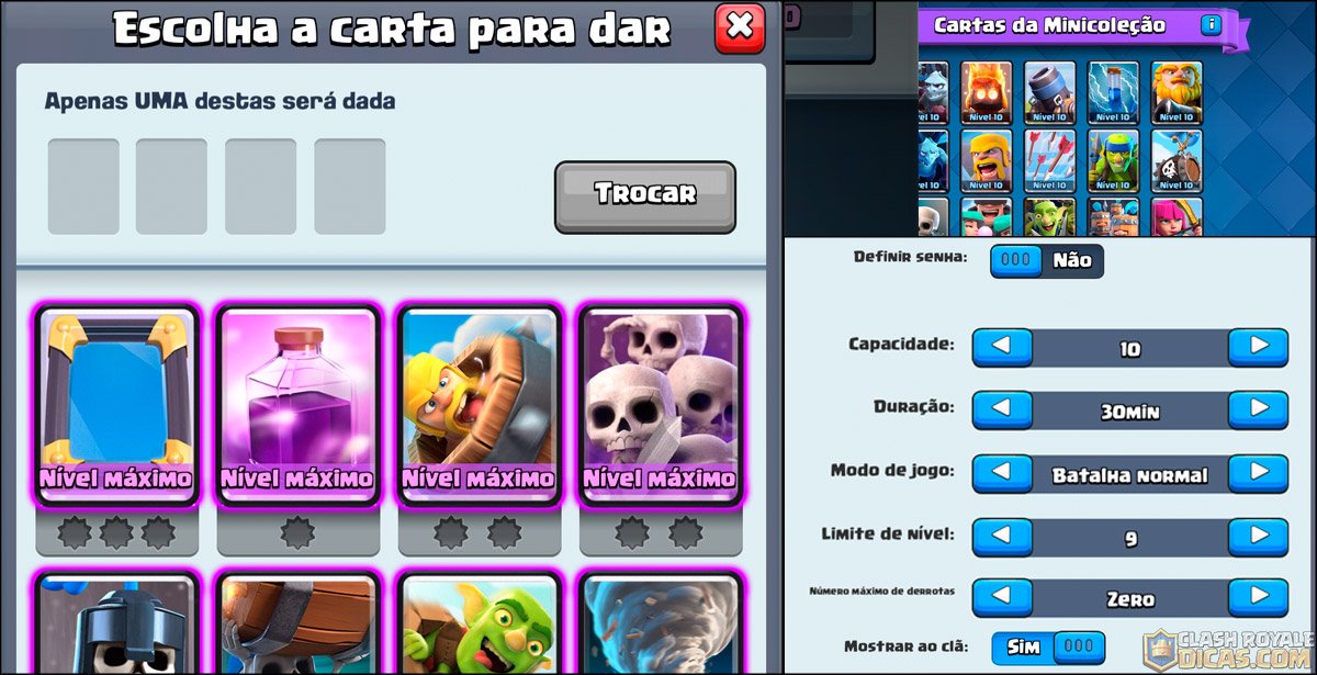 - Minicoleção: Crie um deck de uma coleção recém-gerada de 40 cartas, assim como nas Guerras de Clãs. Será um desafio divertido para estratégia de montar decks.