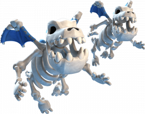 - Os Dragões Esqueleto não causam muito dano, são fracos para acertar unidades que tem alvo aéreo como Mago e Executor, mas geralmente destroem o Assistente ou Executor enquanto ficam aleijados.