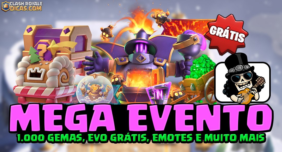 Super simples: a partir de segunda (22/12), o evento aparece na tela inicial com ícone de carrinho de gemas. Jogue batalhas normais e desbloqueie as recompensas automaticamente — sem desafios extras!