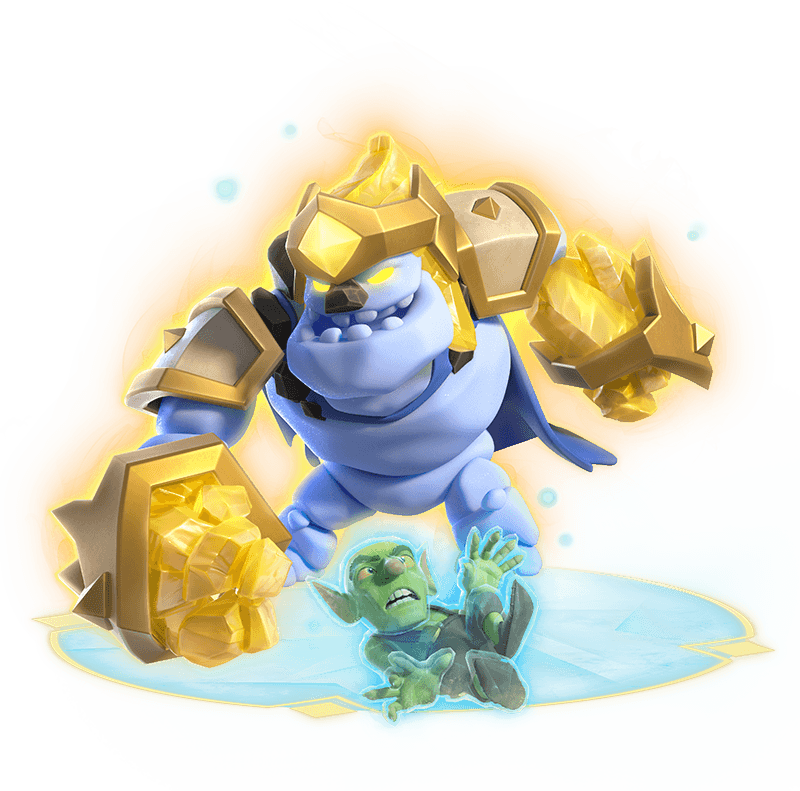 Visualmente, ele tem um visual digno de um Herói, se destacando pelos braceletes e ombreiras douradas, além de um capacete personalizado com o símbolo dos heróis. Apesar da armadura nova, a “alma” da carta permanece fiel. Em termos de atributos básicos (Vida, Velocidade e Alvo), o Golem de Gelo Heroico é idêntico à sua versão comum de mesmo nível, mantendo inclusive o dano de morte.