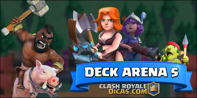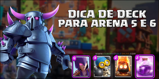 Dicas de Decks para Arena 5 no Clash Royale, a Arena Vale dos Feitiços, onde desbloqueamos as Cartas dos Morcegos, Espíritos de Fogo, Fornalha, Mago, Veneno, Gelo, Cemitério e Bruxa Sombria, dando uma grande variedade de cartas novas para conseguir subir de arena!