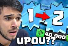 "No vídeo de hoje, gastei 100 mil gemas abrindo os novos baús do rei lendário no Clash Royale e ganhei...